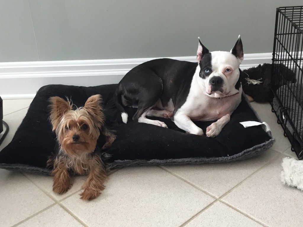 Eventually, she was unable to go up or down the two steps from our back door to the patio. A phone call to the vet resulted in a discussion that she would soon loose control of her bowels and bladder, something we knew would be humiliating and terrifying to our beloved blue-eyed Boston.