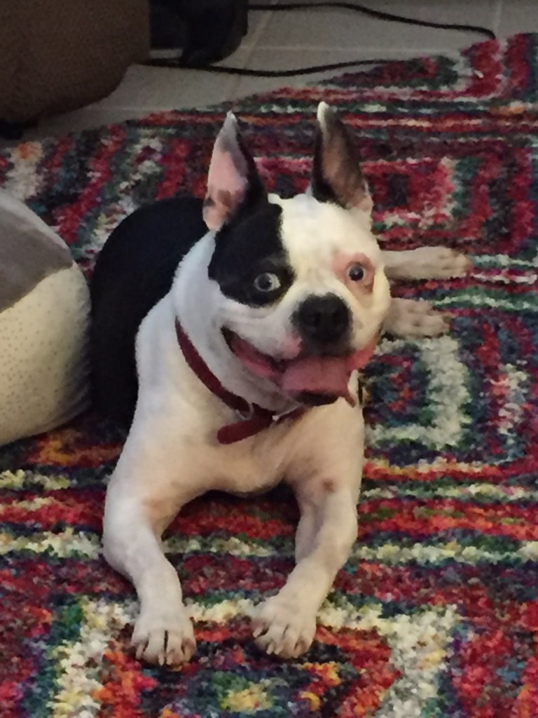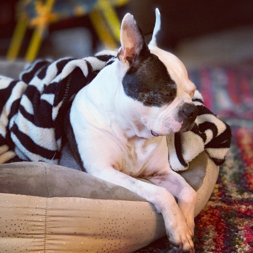 Kipley joined our family when she was six months old…the result of a college student who made several poor decisions about housing and who was forced to rehome this sweetie. She’s a registered Boston Terrier and we didn’t even have to think twice about it. She had blue eyes and a long tail…something we had never seen in other Bostons. That was twelve years ago. On June 7, 2021, she crossed over the Rainbow Bridge and I miss her terribly.